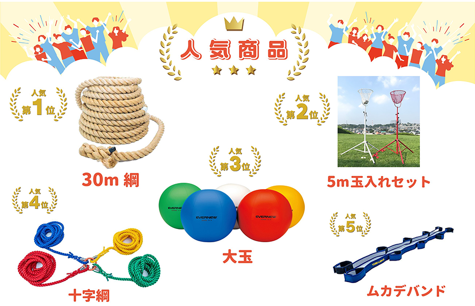 運動会に欠かせない競技用品や応援グッズを豊富に取り揃え、企業や学校、地域イベントまで幅広くサポートいたします。