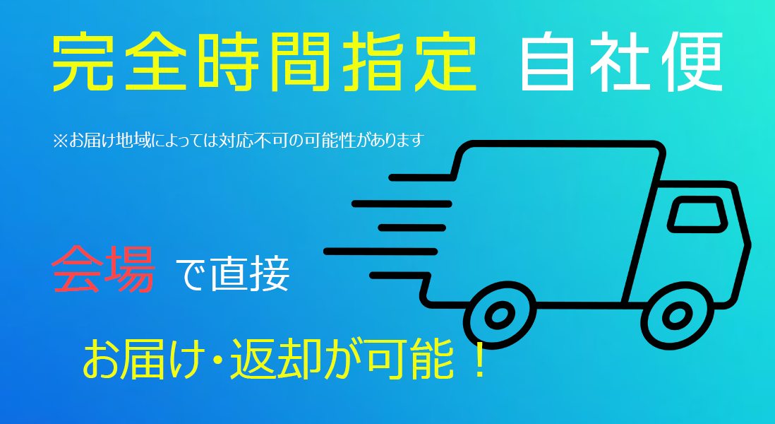 そのため、弊社自社便でのお届け・回収のみのご対応となりますことを、あらかじめご了承ください。