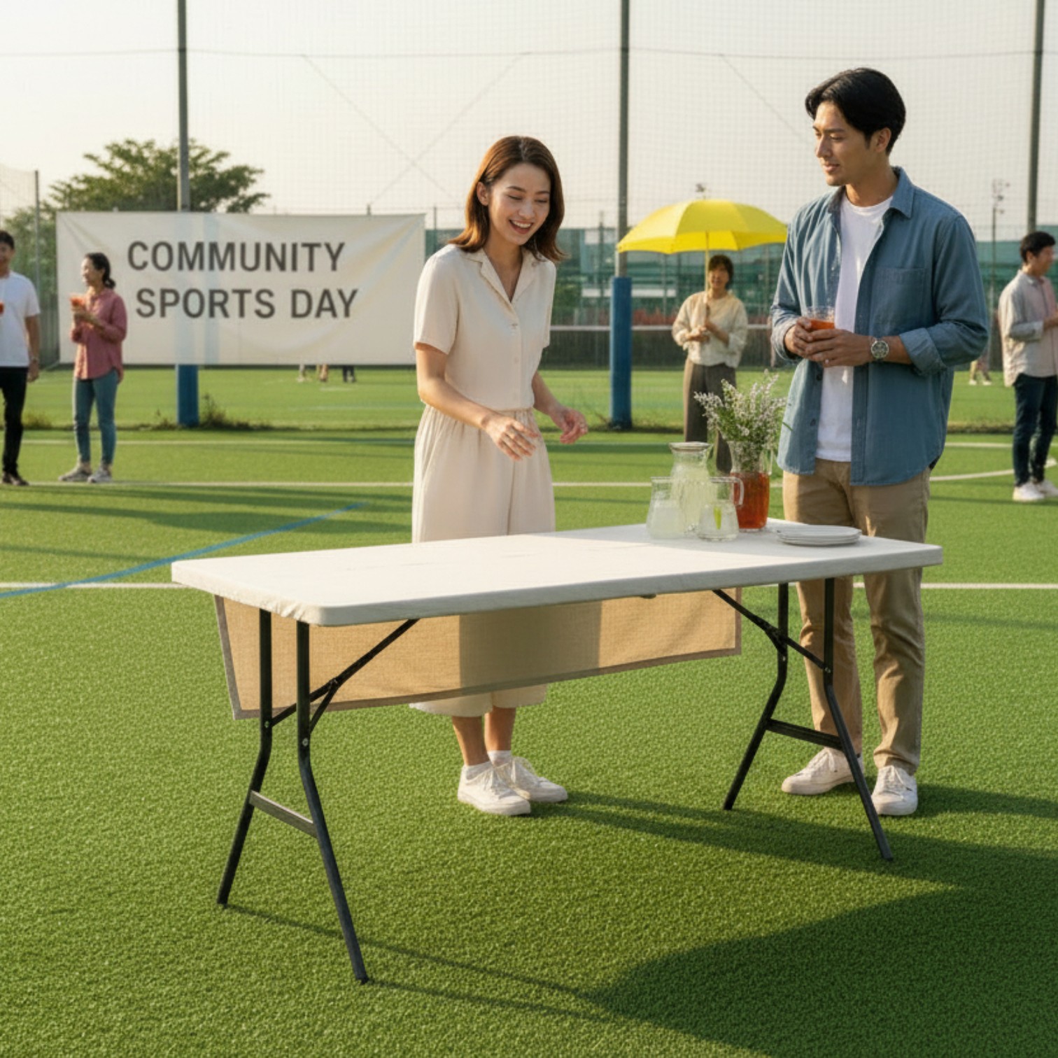 「折りたたみ式テーブル(6~8人用)」は、運動会やイベント、会議などで幅広く使用できるレンタル用テーブルです。