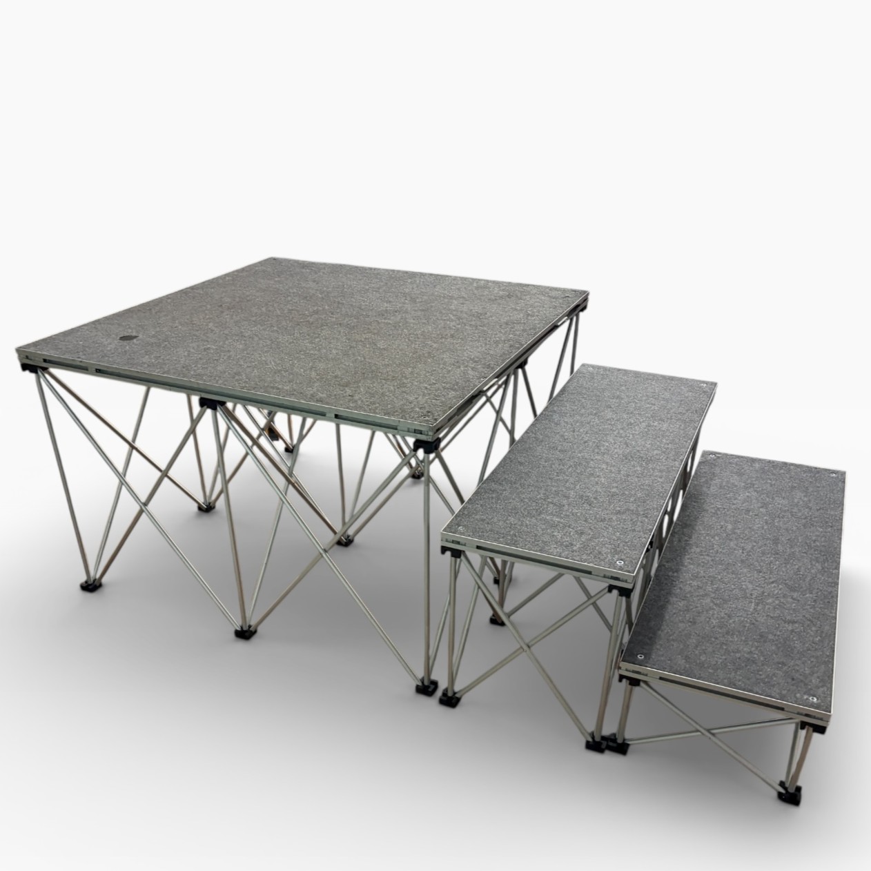 「組み立て式 簡易アルミステージ(1m×1m)」は、イベントや式典で手軽に設置できるアルミ製の簡易ステージです。